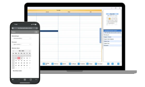 Met onze online afspraken module voor salons kunnen klanten eenvoudig 24/7 afspraken boeken via uw website of social media. Behandelingen, medewerkers en tijden worden direct in uw salon agenda gepland.
